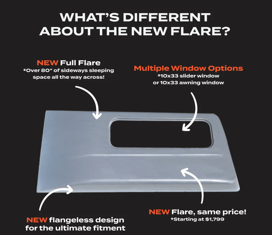 Pro Tip: Pair your Flares with Trim Rings for the ultimate finish. Together, they create a smooth, flush interior surface from flare edge to flare edge—maximizing comfort and usable width for better sleep.