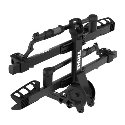 This heavy-duty 2-bike rack is perfect for carrying electric bikes and bikes with carbon frames or custom paint jobs. Integrated wheels let you roll the rack, so you don’t have to carry it to your vehicle. Tilts with bikes loaded.